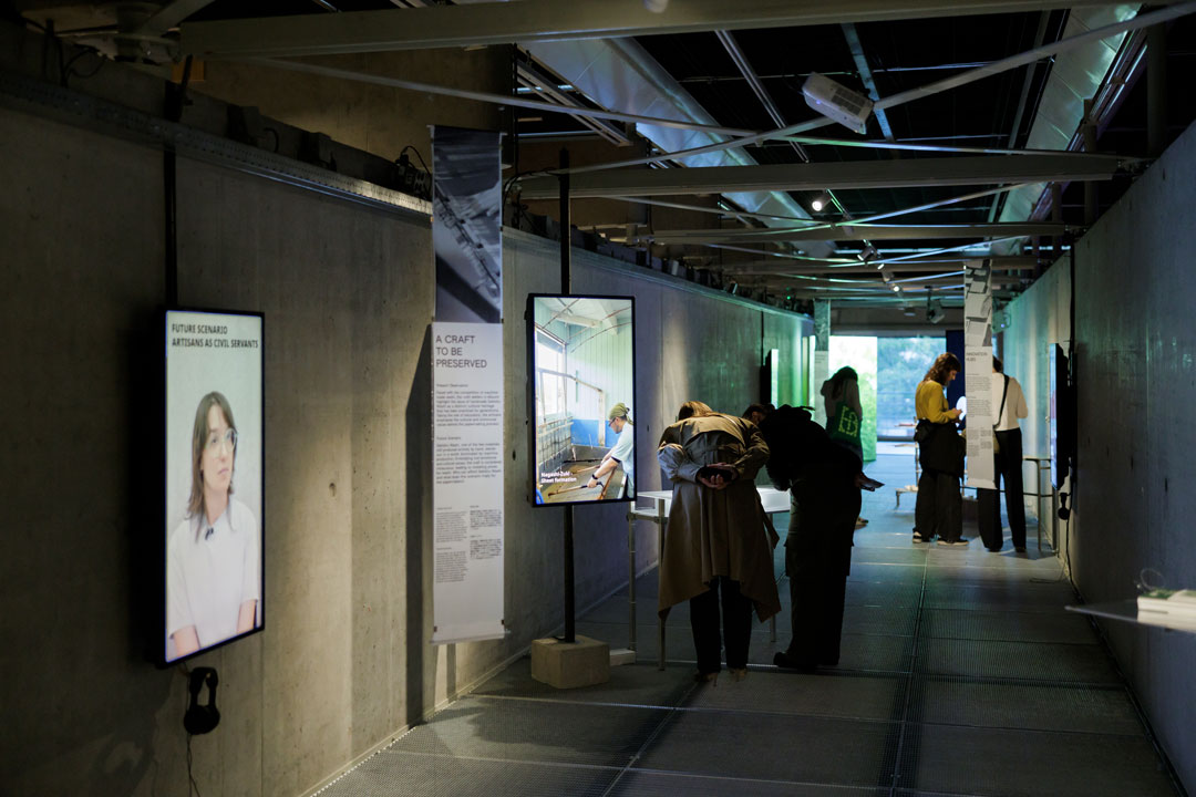 Tailored for the museum Nieuwe Instituut in Rotterdam, Washi Futurism takes over two rows at Gallery 3. At the exhibition space, an interactive installation and a hybrid publication place the material at the center of attention. In the first row, speculative videos explore the future(s) of this traditional craft, emphasizing its untapped potential. Interactive stations invite visitors to engage with the material firsthand. In the second row, a paper installation is activated by a light show, letting the material speak for itself. The publication bridges the sensory experience of paper with the digital realm by offering access to immersive 360º videos. Artisan testimonials share insights into their learning process and their deep connection to the craft.